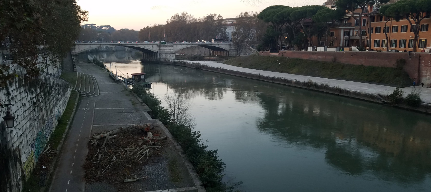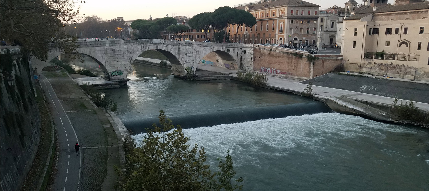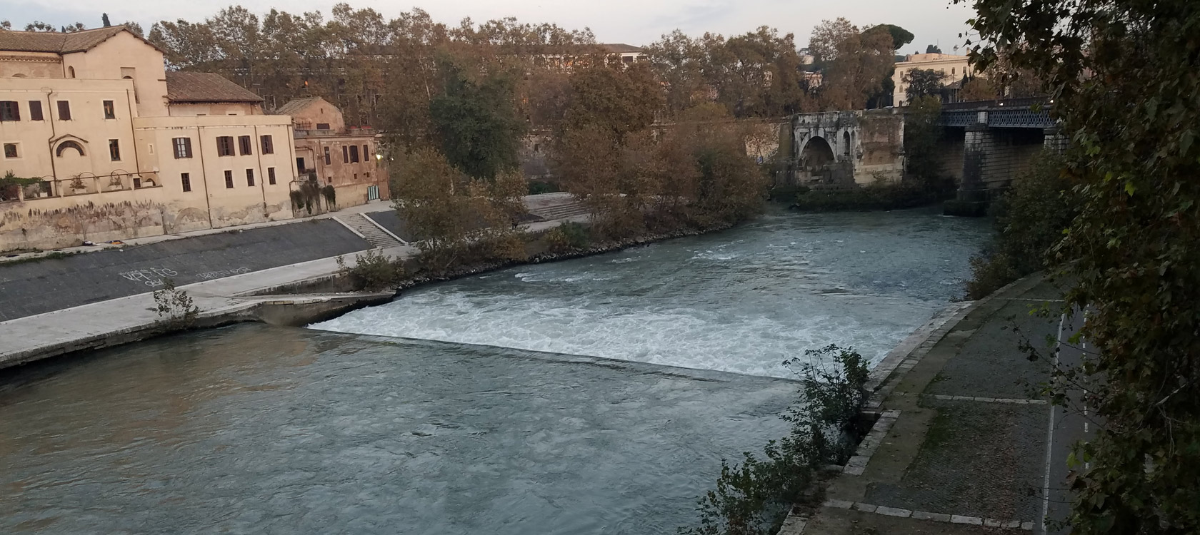 TIBER RIVER ON THE PONTE CESTIO LOOKING AT PONTE PALATINO